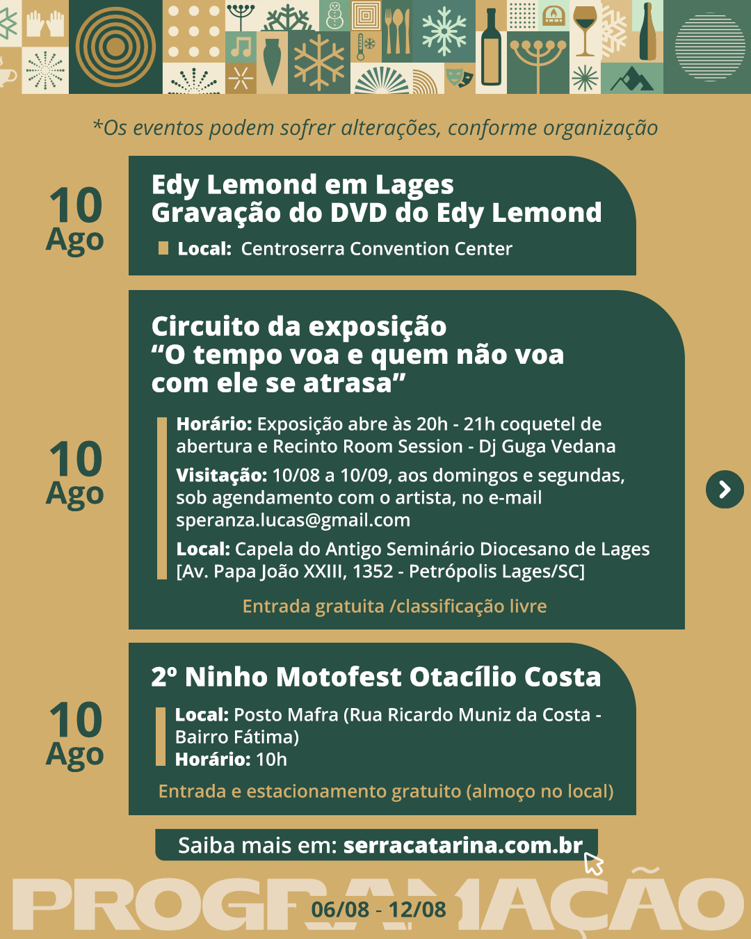 Agosto chega trazendo uma programação irresistível para quem visita a Serra Catarinense. Com o 7º Serra Catarina Festival de Inverno, os 18 municípios da Amures se unem para oferecer uma série de eventos que prometem aquecer o coração e despertar o paladar dos visitantes. De pratos exclusivos a eventos culturais, os eventos oferecem experiências únicas e inesquecíveis para todos os gostos.